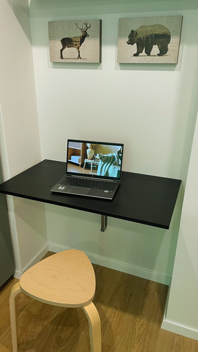 The apartment’s kitchen is practically equipped and provides everything you need to prepare delicious meals. Modern appliances and ample counter space make cooking comfortable and convenient. Its open connection with the living area creates a welcoming sense of spaciousness. A dining table with seating for 4 is part of the kitchen setup, and can be extended with a bench to accommodate up to 6 people - making it the perfect spot for family dinners or gatherings with friends. It becomes a place where loved ones come together to share experiences, enjoy meals and feel at home in a warm and inviting setting.